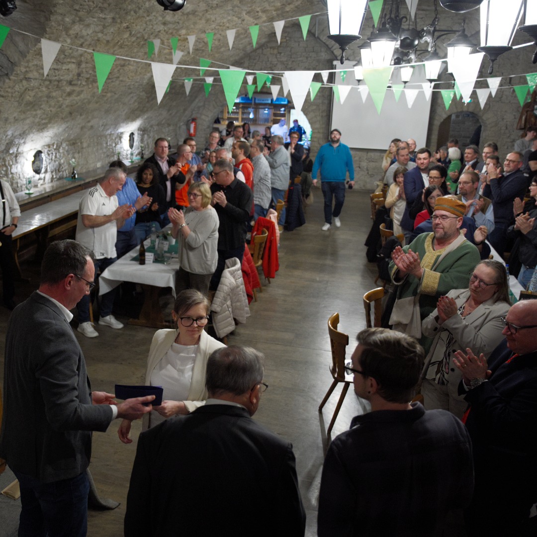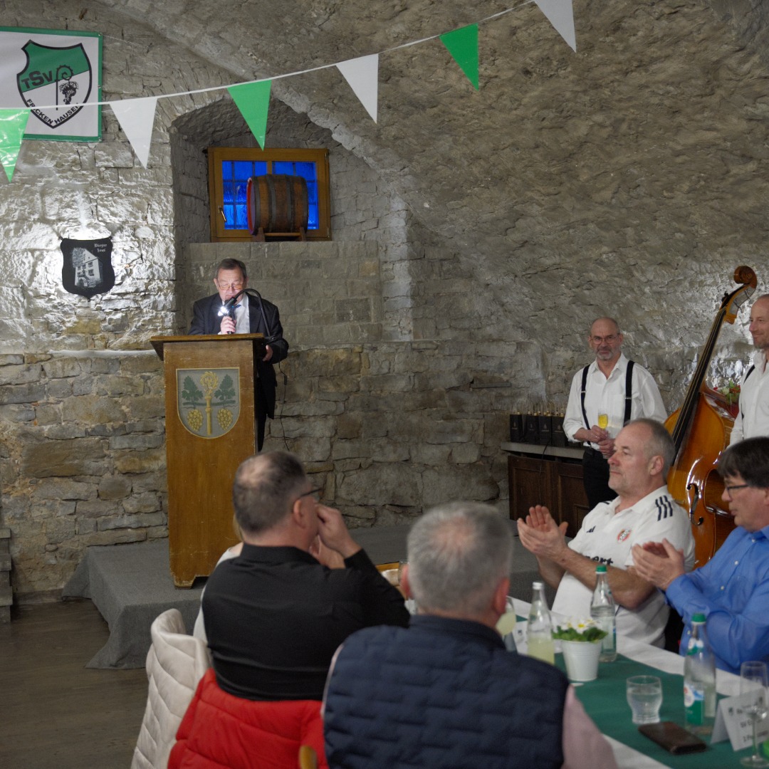 Der Landtagsabgeordnete Volkmar Halbleib erinnerte in seinem Beitrag an verschiedene Episoden aus der Orts- und Vereinsgeschichte und würdigte unter anderem die Entwicklung des Frauenfußballs sowie das Engagement zur Wiederbelebung der Herrenmannschaft. Gemeinsam mit Landratskandidatin Katharina Räth überreichte er eine Spende in Höhe von 125 Euro – symbolisch ein Euro für jedes Vereinsjahr. Bürgermeister Günter Hofmann betonte die prägende Rolle des TSV für das Gemeindeleben und dankte allen Ehrenamtlichen für ihren Einsatz über Generationen hinweg.
