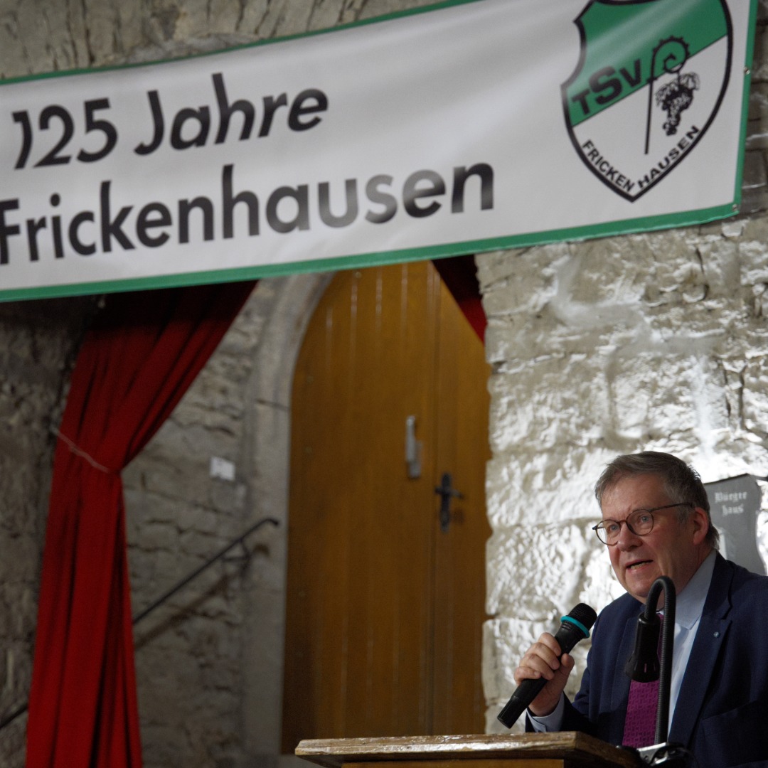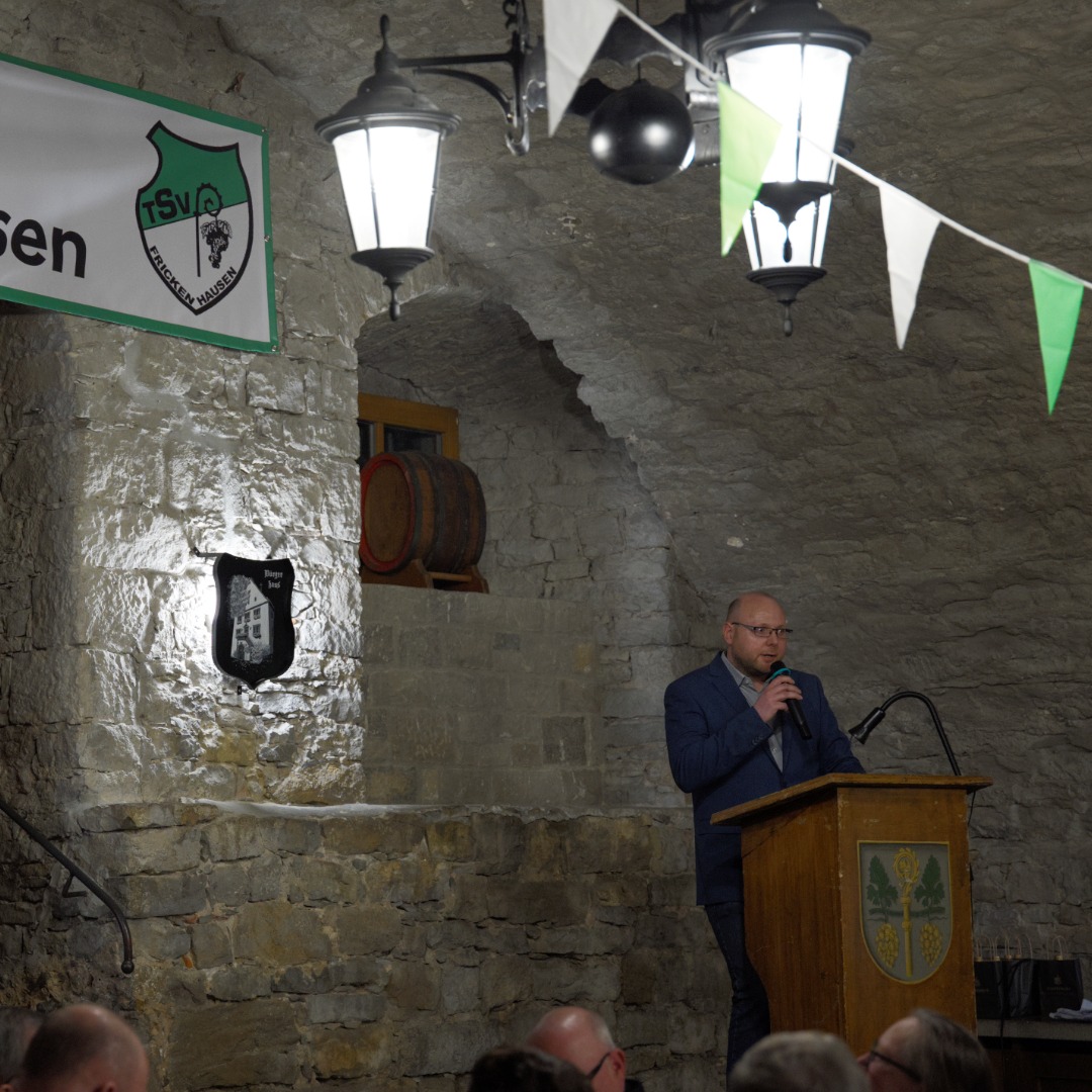 Den Auftakt machte der 1. Vorsitzende Helmut Wittiger, der Mitglieder, Ehrengäste und Freunde des Vereins begrüßte. In ihren Grußworten stellten die Redner vor allem den Zusammenhalt im Verein und das ehrenamtliche Engagement in den Mittelpunkt. Schirmherr Dietrich Oechsner von der Brauerei Oechsner betonte seine Verbundenheit mit Frickenhausen. Landrat Thomas Eberth hob hervor, dass Vereine wichtige Orte der Gemeinschaft seien.