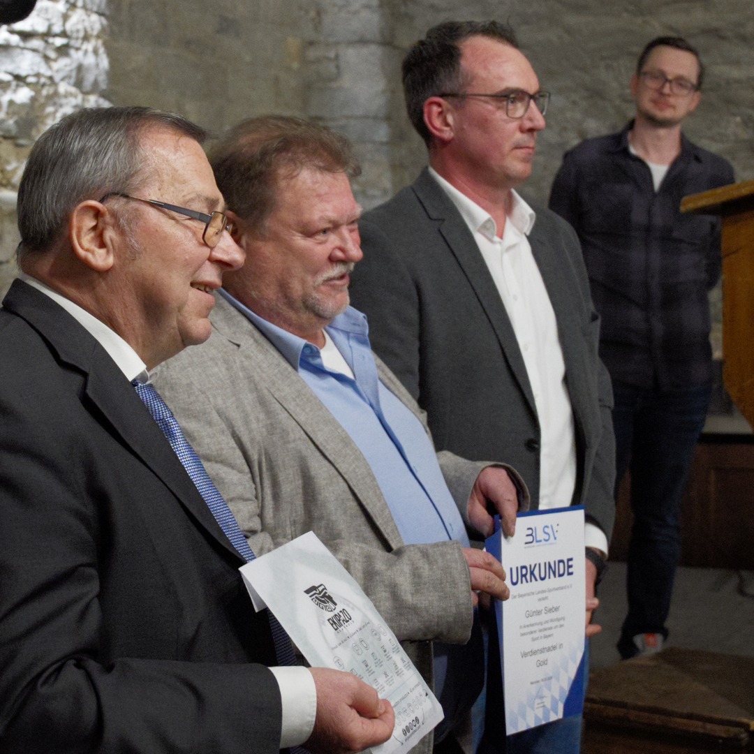 Glückwünsche der Sportverbände überbrachten Marco Göbet vom BFV-Kreisverband Würzburg sowie Gerd Scheuermann als Vertreter des BLSV. Der BFV überreichte eine Urkunde, eine Plakette sowie eine Spende in Höhe von 500 Euro, der BLSV eine Urkunde und einen Gerätegutschein über 250 Euro.